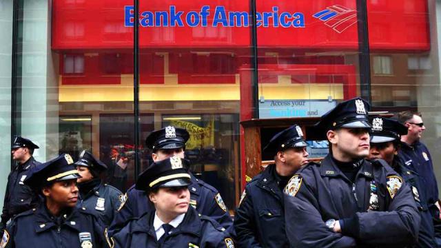 Photo: Mike Fleshman. NYPD in front of Bank America during an Occupy Wall Street Protest on March 16, 2012.